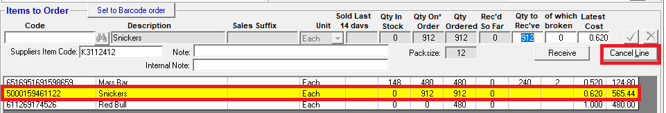 If an item has not been delivered click ion the item so it' highlighted yellow, then click ‘Cancel Line’.