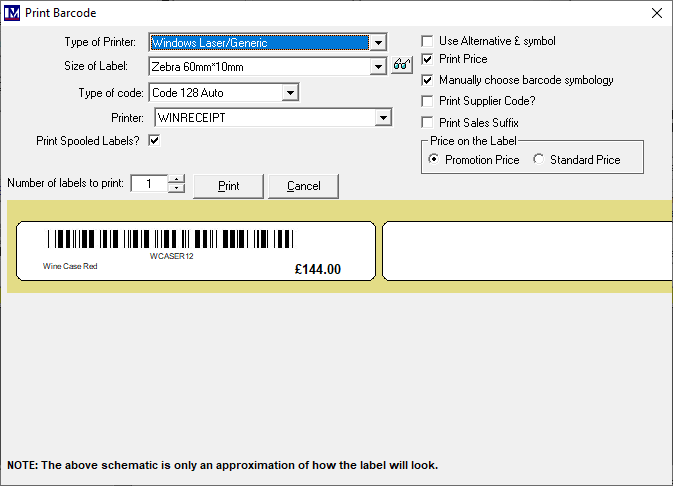 Click 'Cancel' to exit this screen once any labels have printed (or if you decide not to print labels).