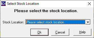 If not you will be prompted to select the stock location, do this using pop up screen below.
