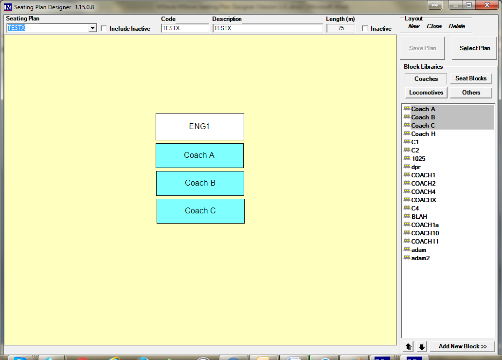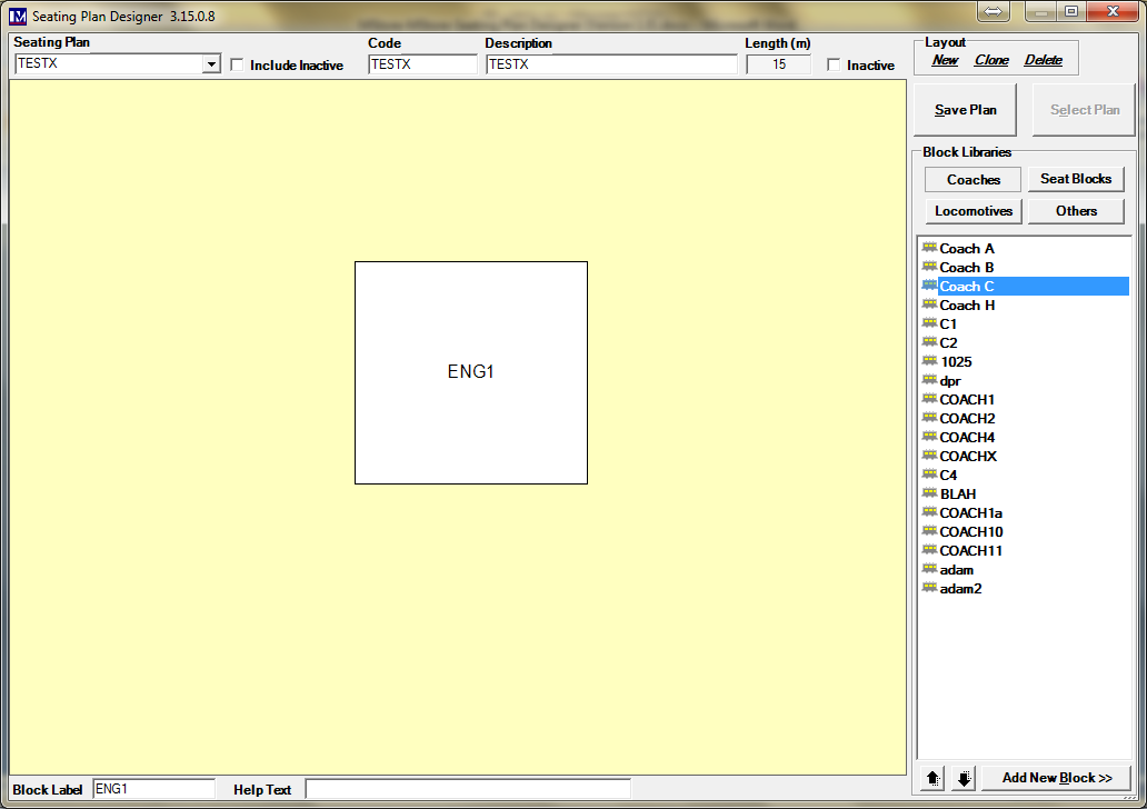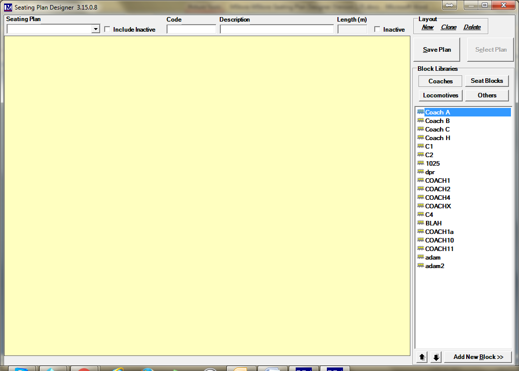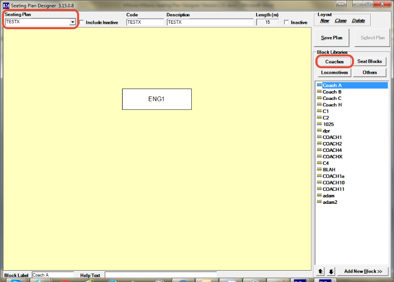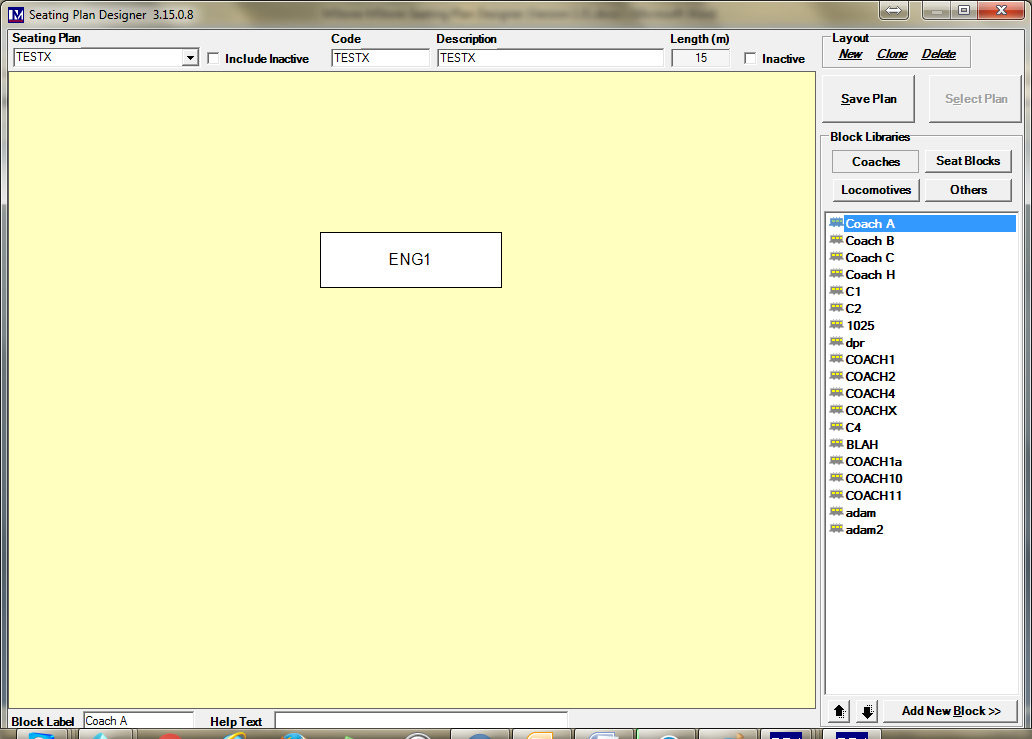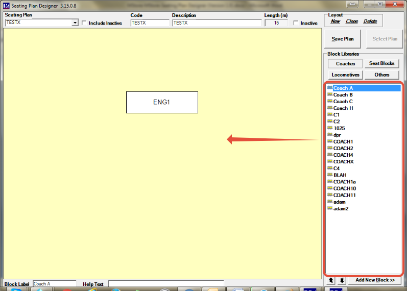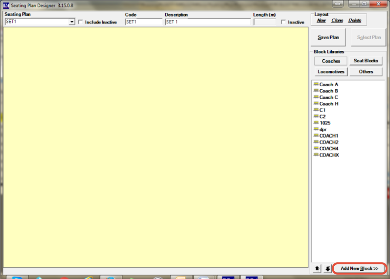 To create new ‘Locomotives’, ‘Coaches’, or ‘Seat Blocks’, then click the ‘Add New Block’ button.