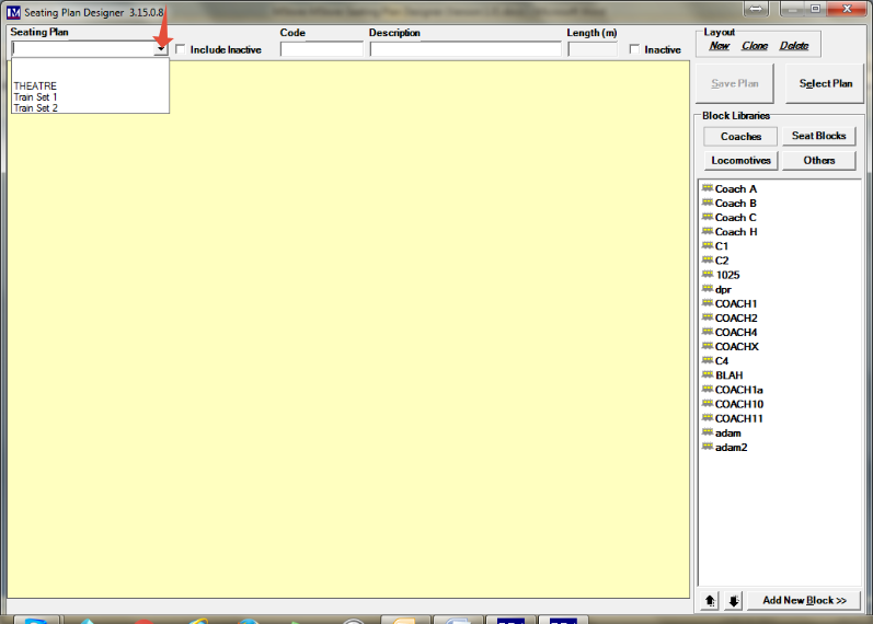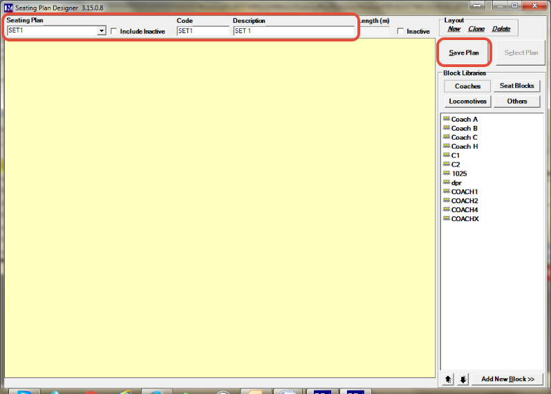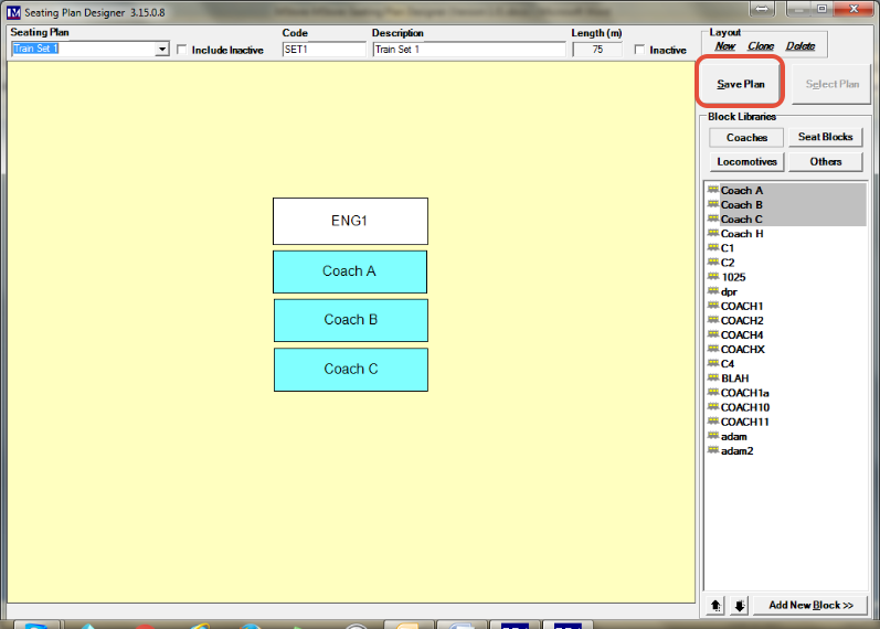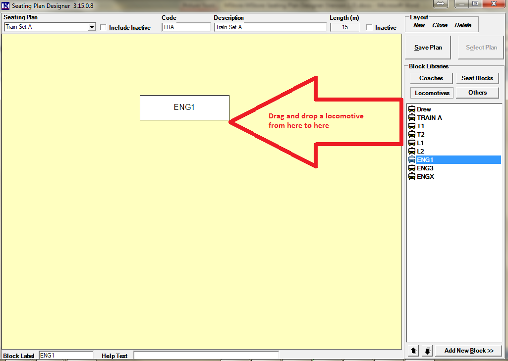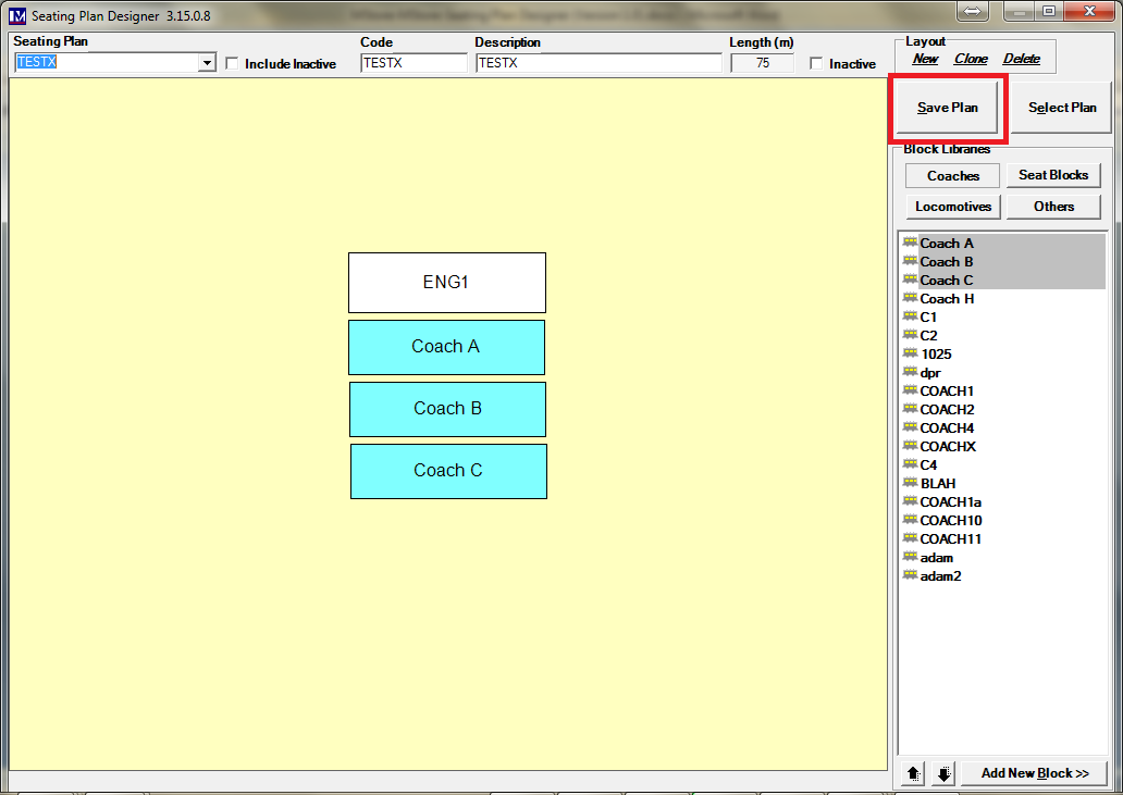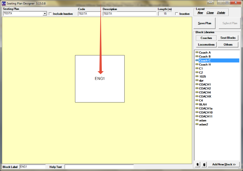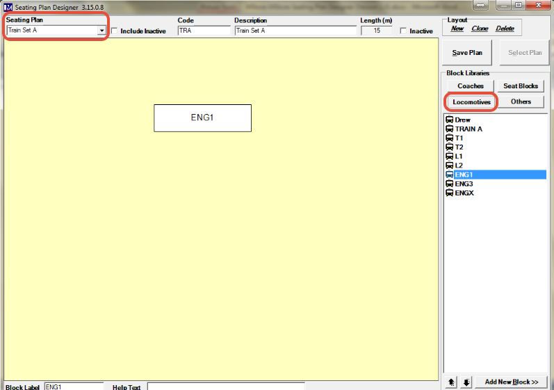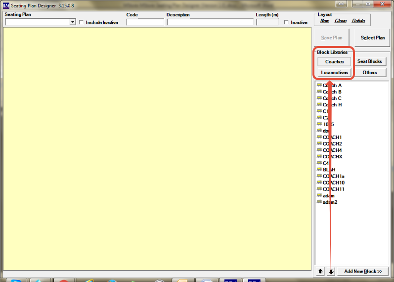 To create new ‘Locomotives’, ‘Coaches’, or ‘Seat Blocks’, then click the ‘Add New Block’ button.