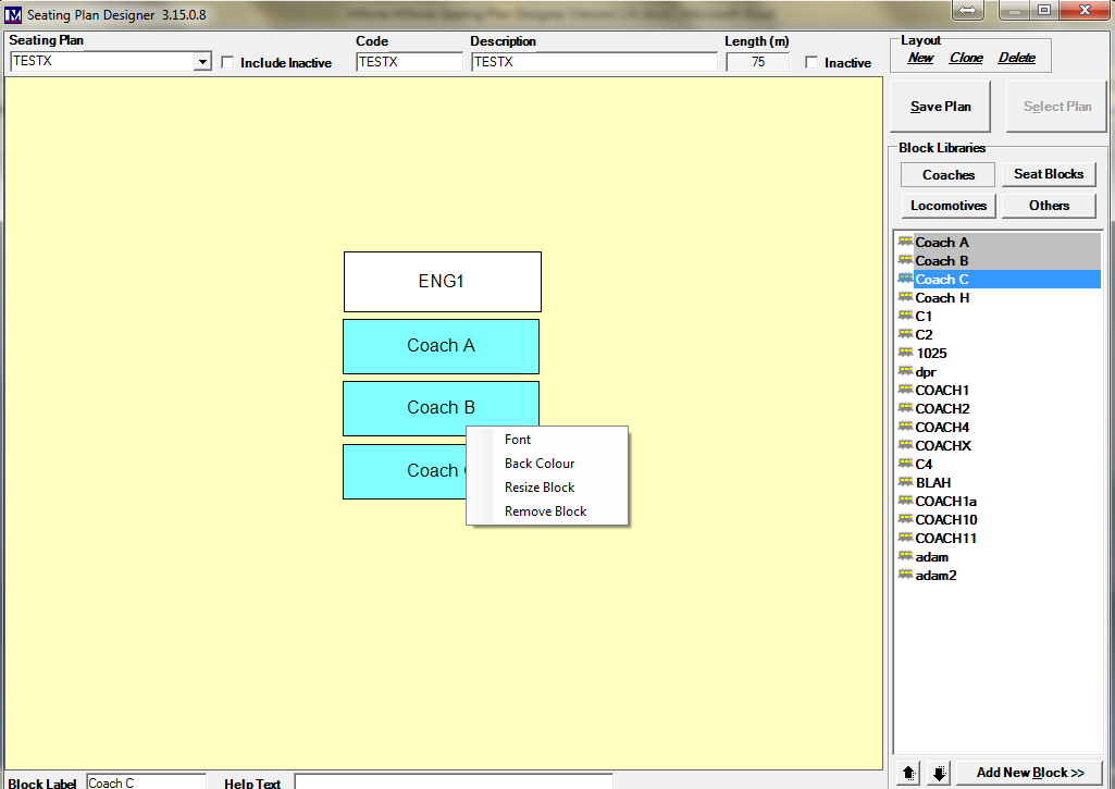 Now left mouse click the ‘Remove Block’ option to remove the selected locomotive/coach from the seating plan.