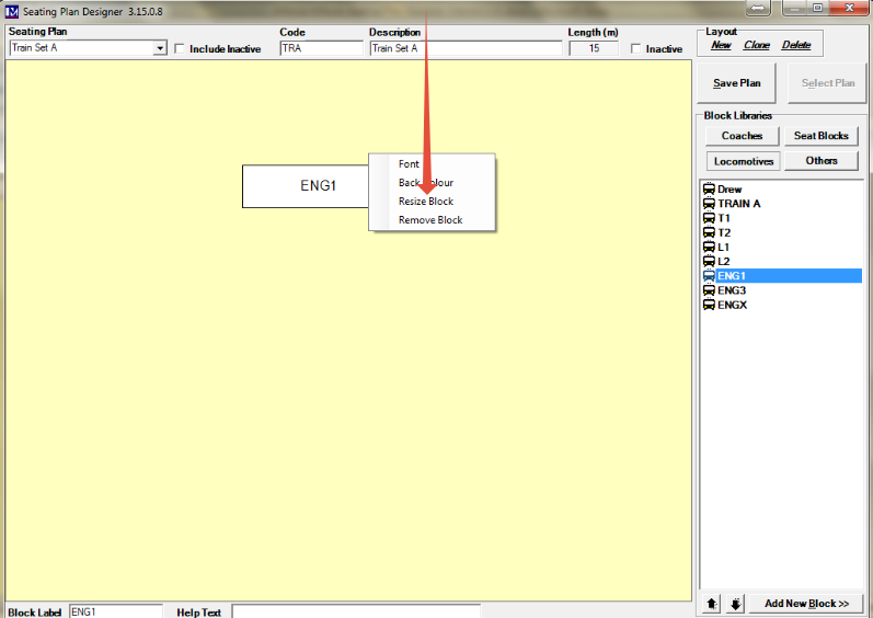 Right click on the locomotive block and then left click on the ‘Resize Block’ option.
