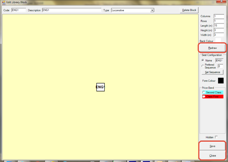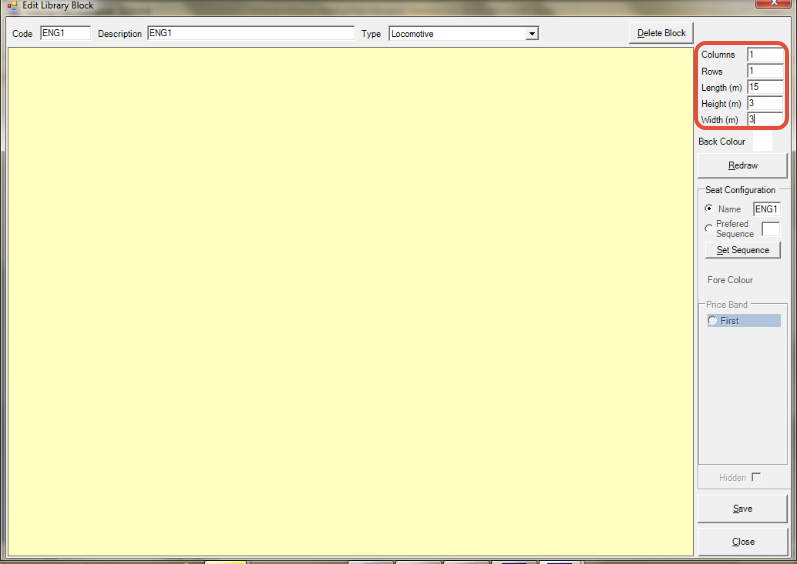Double click on the locomotive ‘block’ to amend its dimensions.