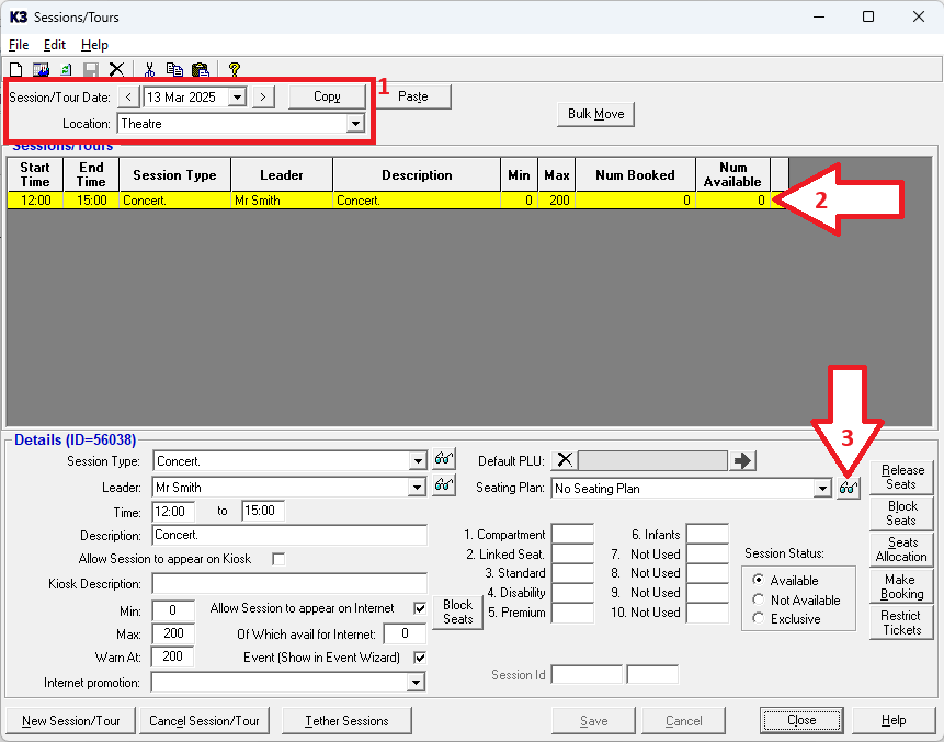 Finally, click 3. the button shown to bring up the ‘Seating Plan Designer’ window.