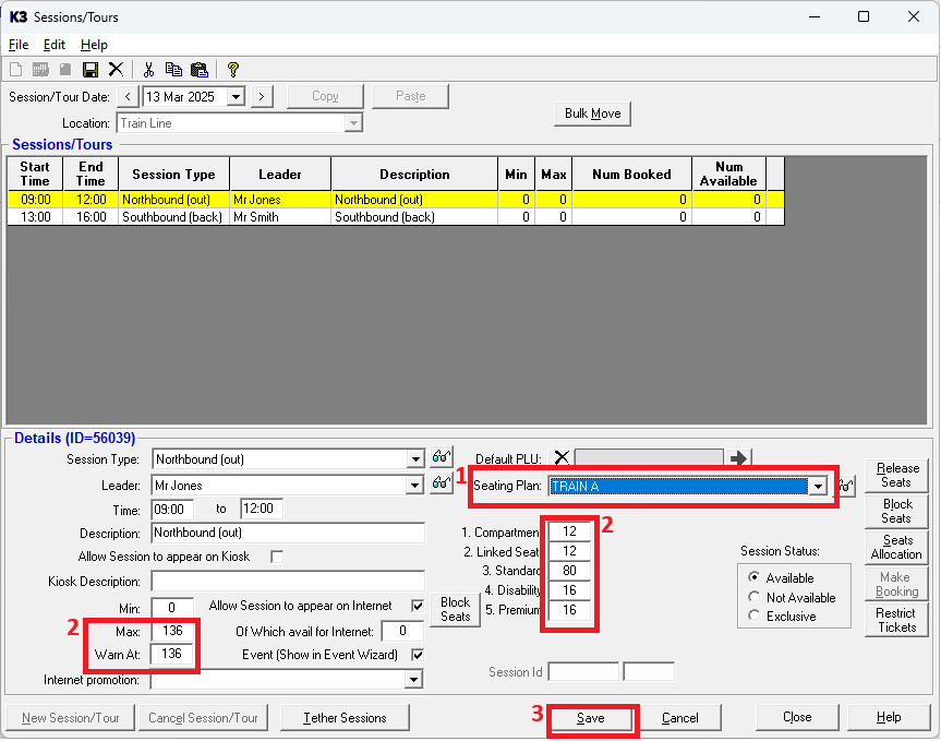 (Remember for customers not using the ‘Trains’ functionality, here you select ‘Seat Blocks’ instead)