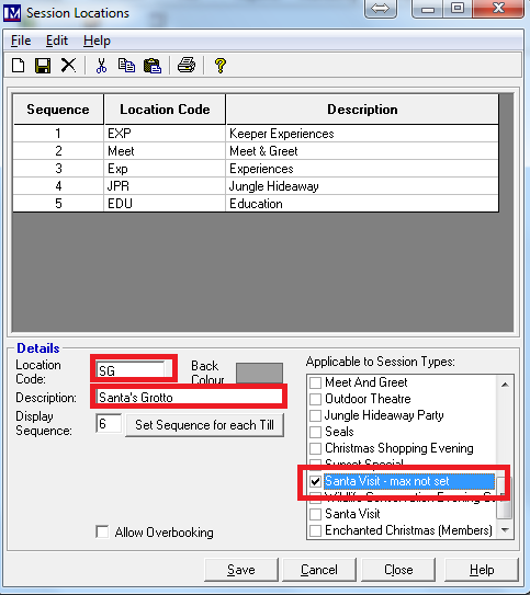 Enter the ‘Code’ and ‘Description’ for this Session Location’ by filling in the relevant boxes.