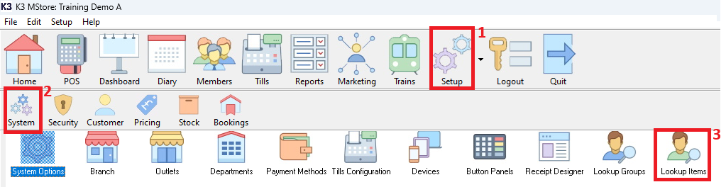 1. click Setup then 2. click System then 3. double click on ‘Lookup Items’.
