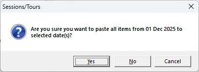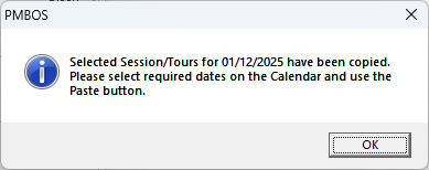 Once the required ‘Session Type’, ‘Session Location’ and ‘Session/Tour Leader’ have been created (as detailed above), the new ‘Session/Tours’ can be added.