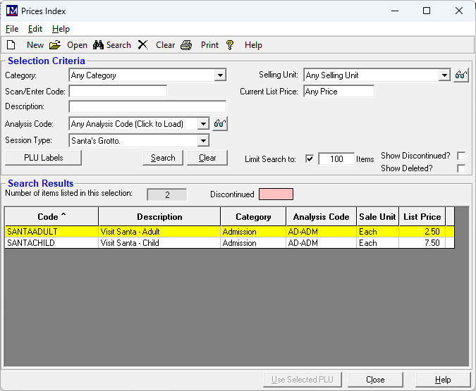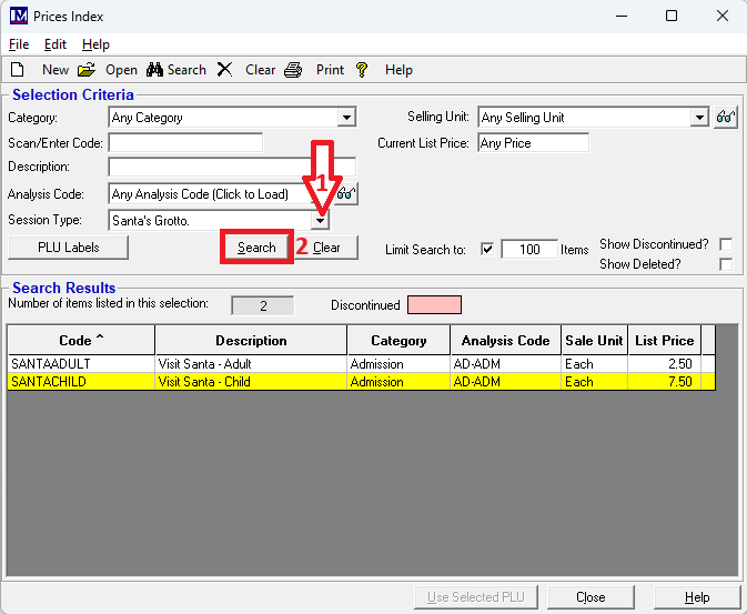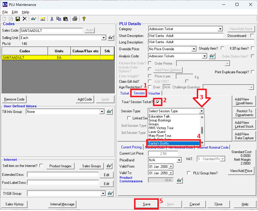 This button can only be used once the PLU's have been linked to a 'Session Type'.