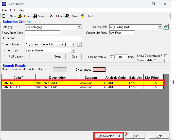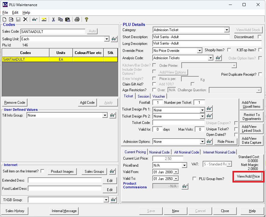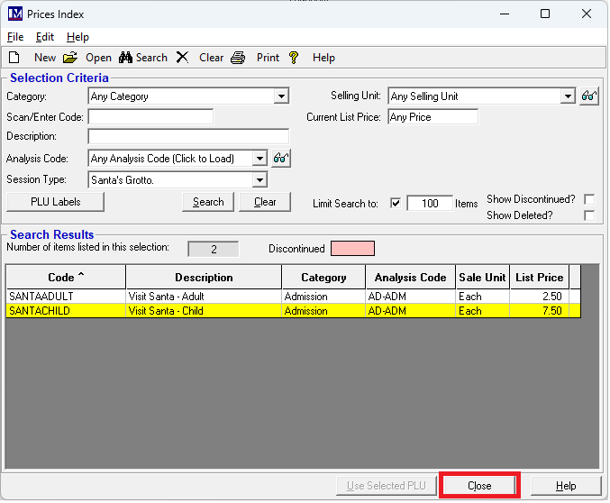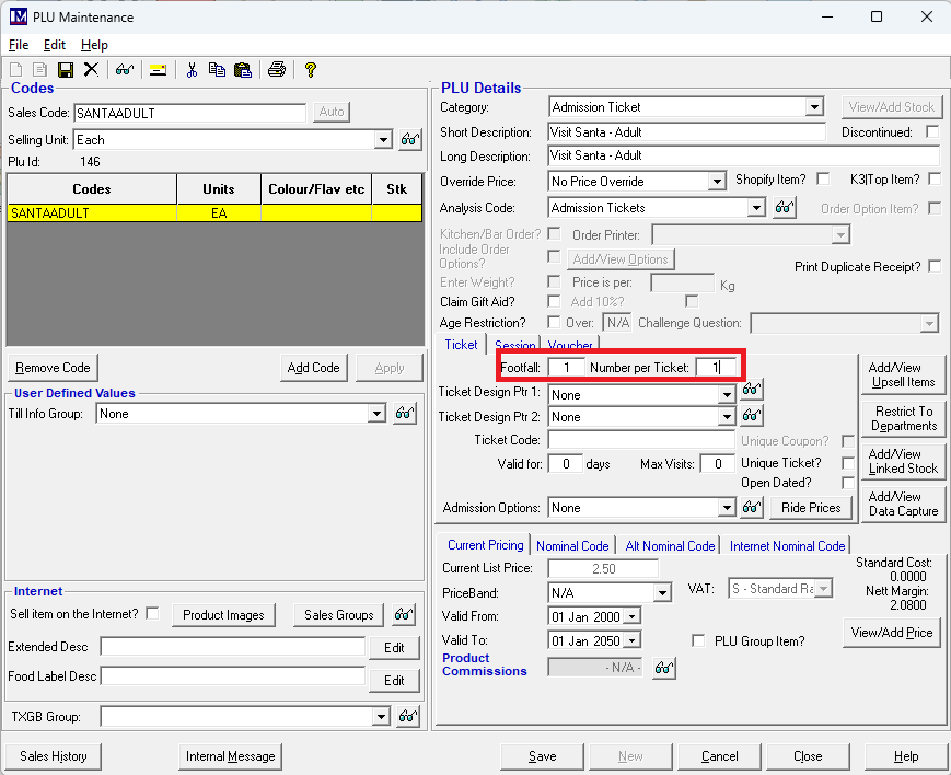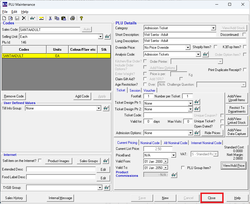 If required you can then click in the the box next to the ticket (PLU) description, so it becomes unticked.