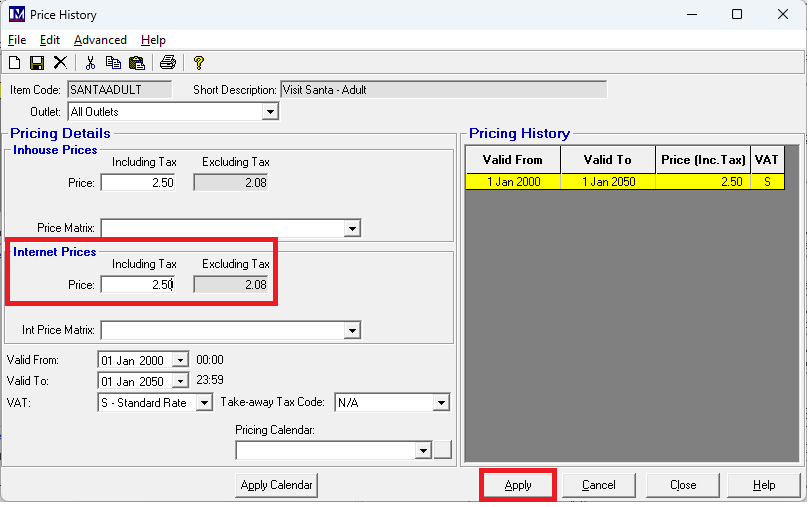 Next enter a ‘Code’ and ‘Description’ as required and click ‘Apply’.