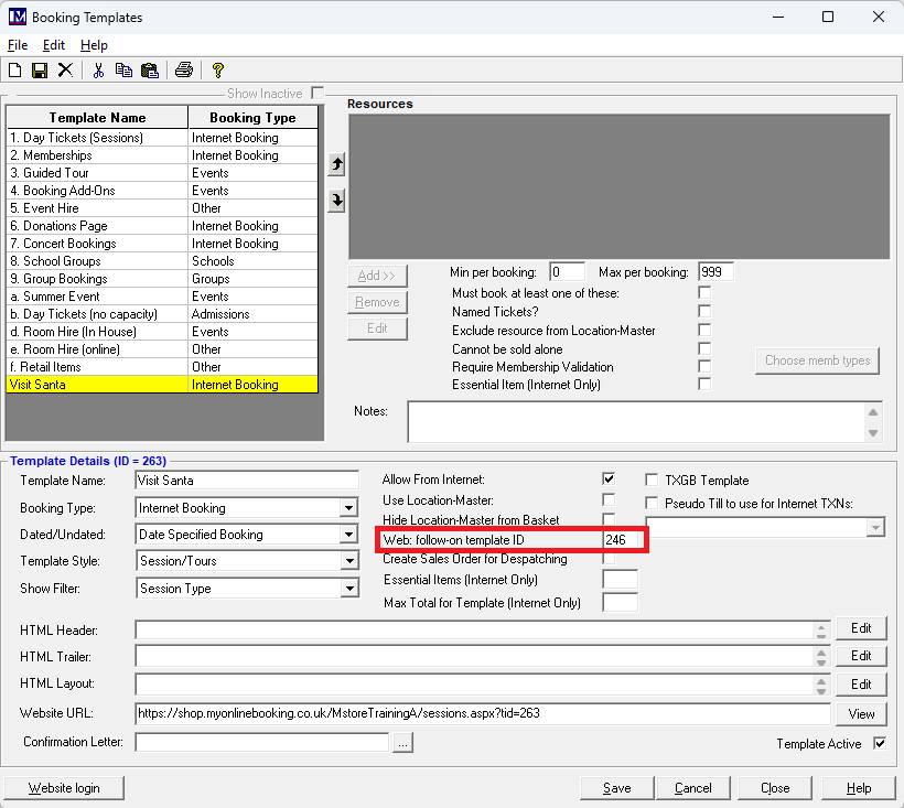 For example, if you want the ‘Visit Santa’ Template to be automatically directed to another template, you simply enter the ID number of the other template in the ‘Web follow on template ID’ field then click ‘Save'.