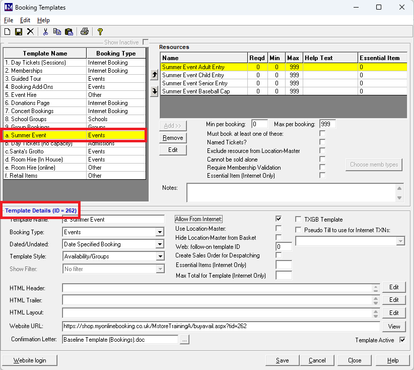 Please note the ID of a template can be found by clicking on any 'Booking Template' then note the ID number (e.g. 262).