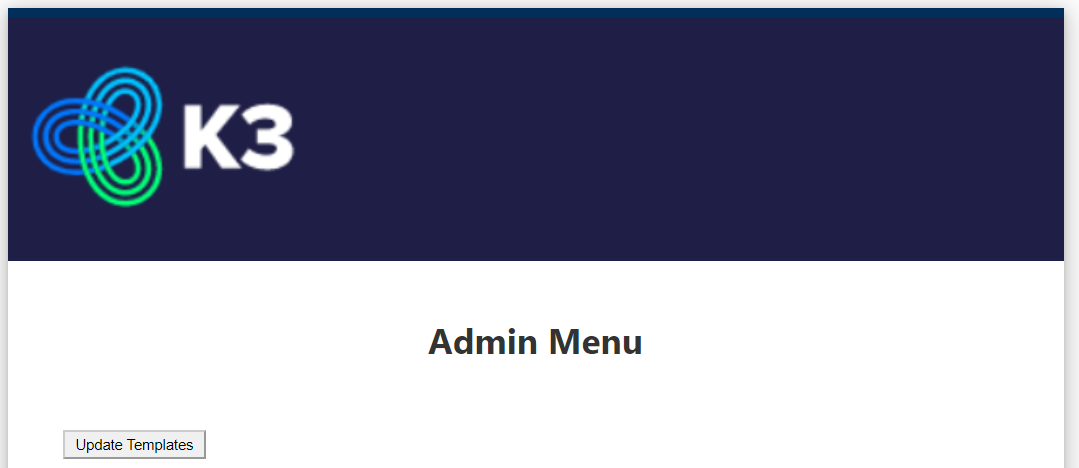 You will now be on the ‘Admin Menu’ page, click on the ‘Update Templates’ button.