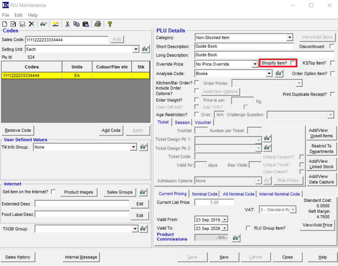 This means that any item in Shopify that is not ticked as a Shopify Item in the PLU Maintenance within the Merac Back Office (see screenshot below) or the item is not derived from Merac will be set to Draft.