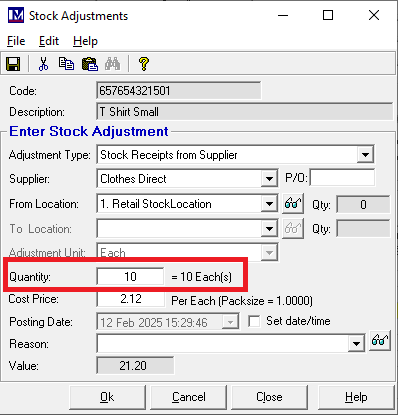 Repeat the above steps for the next stock item, double checking the data before posting each adjustment.