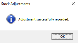 When you click the 'Ok' button to post the adjustment you will see the following message pop up.
