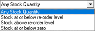 N.B. “stock above / below re-order level “options rely on the ‘Re-Order Qty:’ being set on stock items.