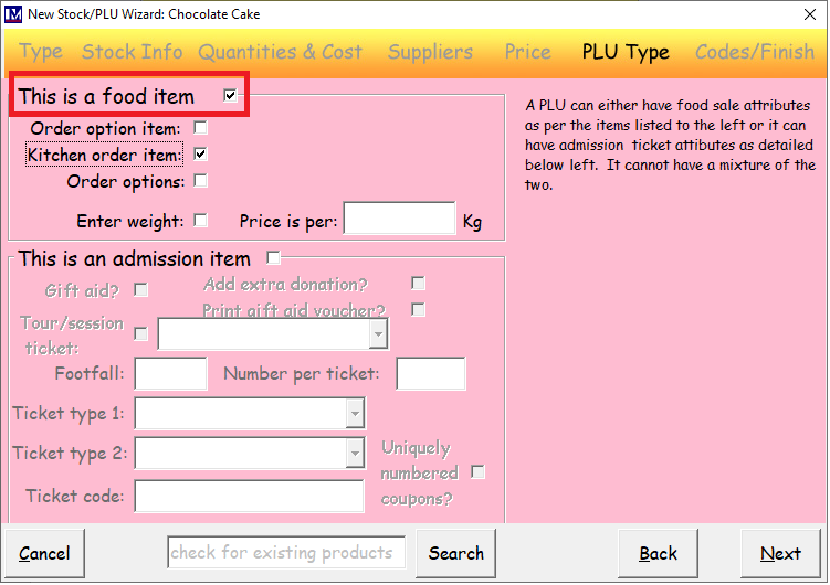 If there are any printing / order requirements, tick the ‘This is a food Item’ box and select the required option(s).