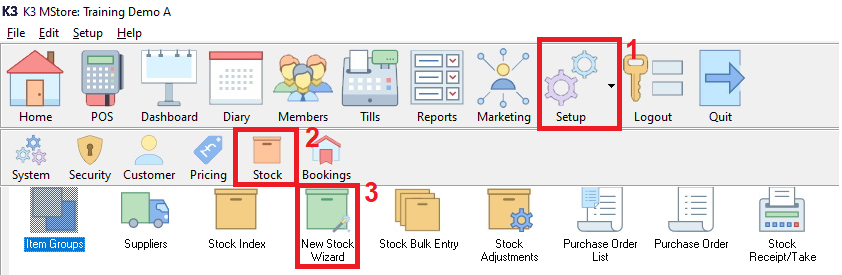 This can be located by clicking 1. Setup then 2. clicking Stock then 3. double clicking New Stock Wizard.