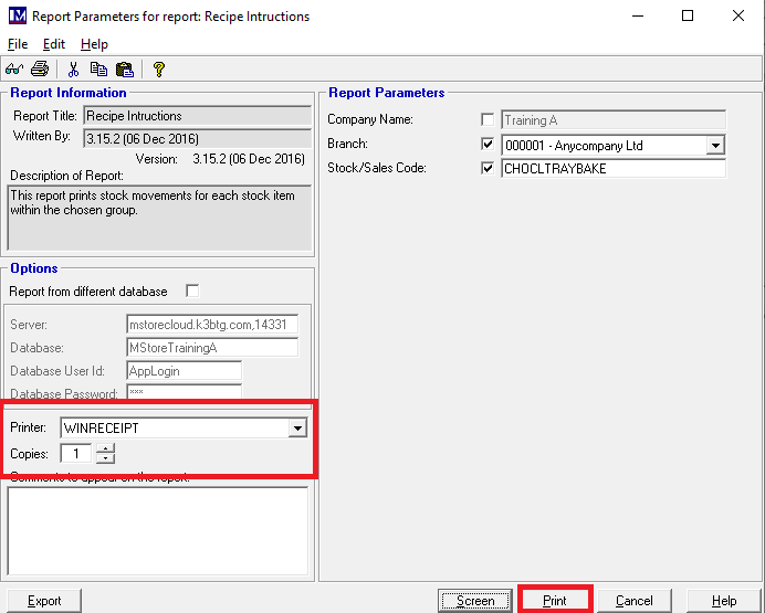 Alternatively, click the 'Screen' button if you want to view this report before printing to see the report (sample below).