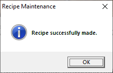 A message pops up saying “Recipe Successfully Made”, click ’OK’.