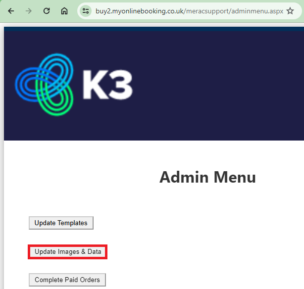 - Once you have gained access to your website Back Office portal, you then need to click Update Images & Data. This will then prompt once this process is complete, which typically takes a couple of seconds.