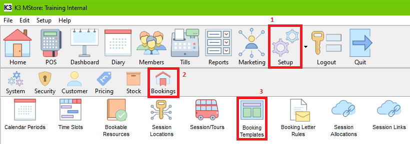 1. Within the Back Office, Click SetupBookings, then Booking Templates