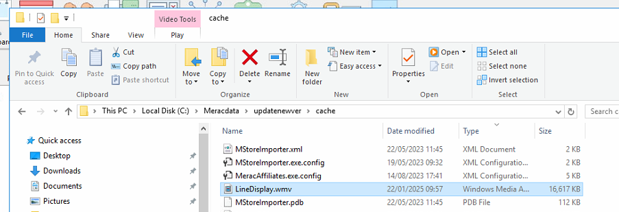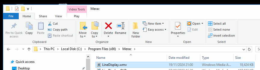 The line display video is found within the C:\ProgramFiles(x86)\Merac folder: